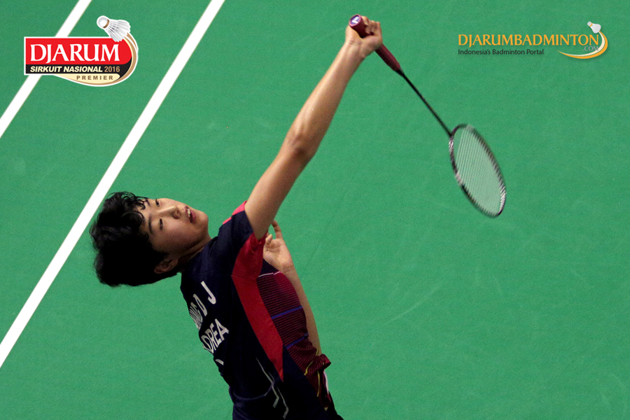 Seong Min Kim (Korea) mengembalikan shuttlecock