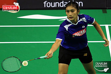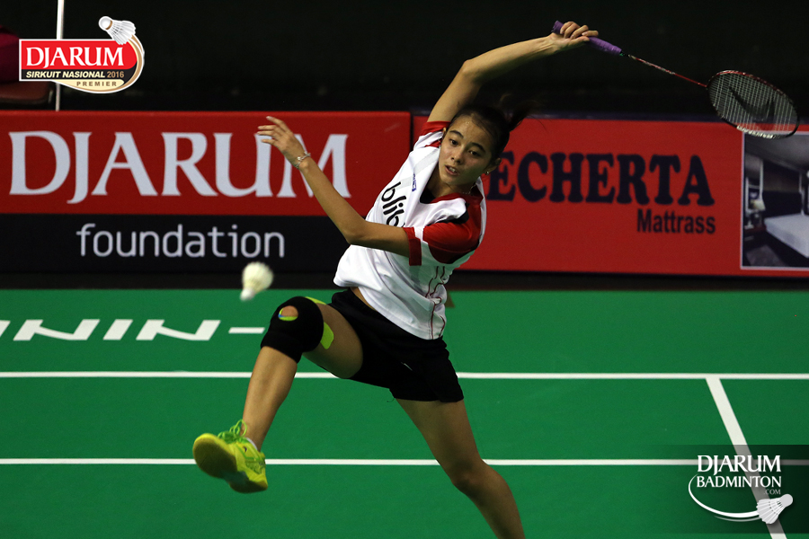 Silvi Wulandari (Djarum Kudus) melepaskan serangan