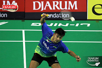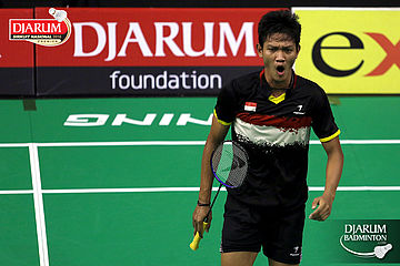 Riyanto Subagja (Djarum Kudus) melepaskan serangan