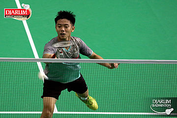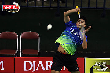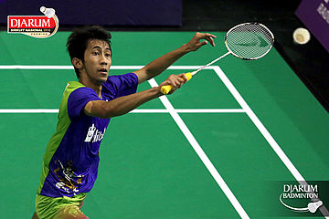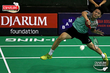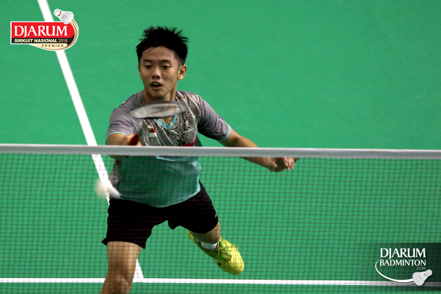 Wisnu Yuli (Djarum Kudus) bersiap menyambar pengembalian