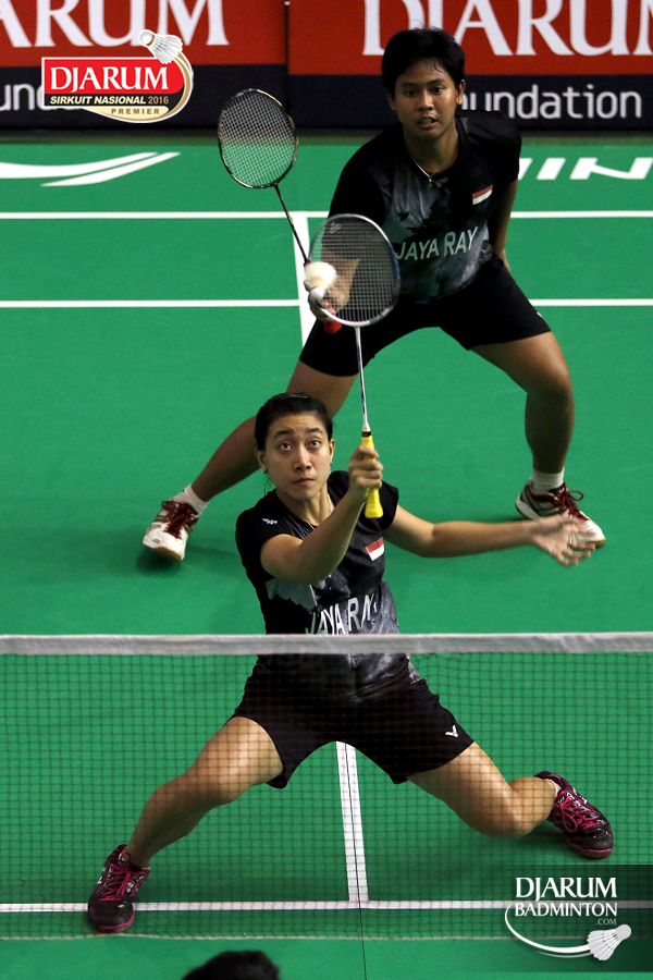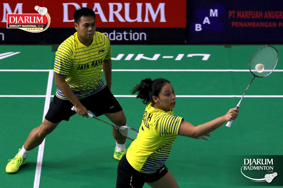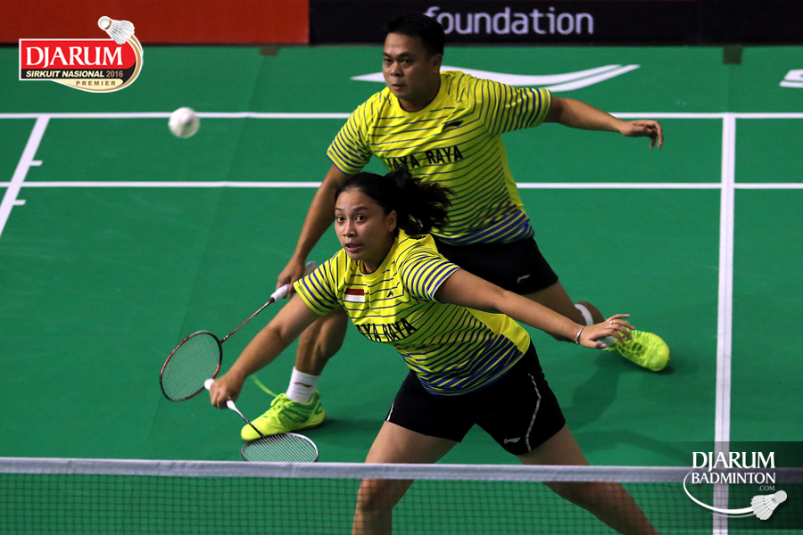 Irfan Fadhillah/Weni Anggraeni (Jaya Raya) menghadang serangan