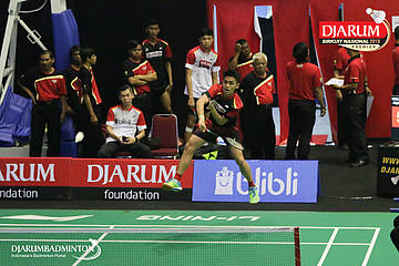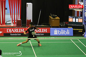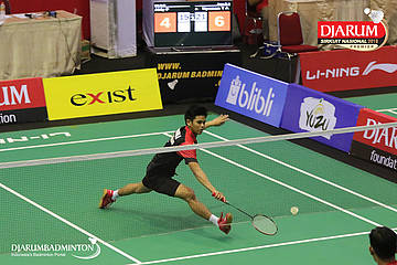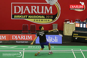 Herdian Muhammad Labib (PB Djarum, Kudus) bersiap menyambar pengembalian