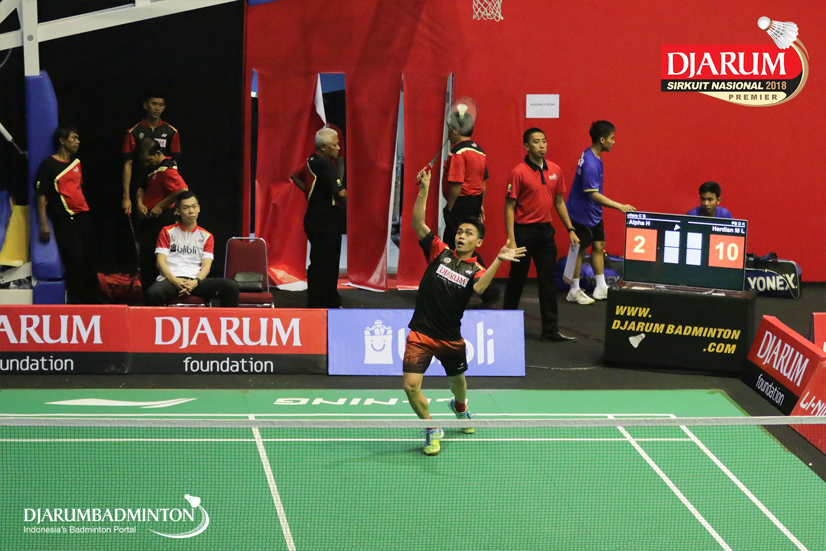 Aldy Firmanda (PB Djarum, Kudus) menyambar pengembalian