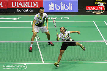 Yoggi Pamungkas dan Fauzia Kartikasari (PB Djarum, Kudus) mengembalikan serangan
