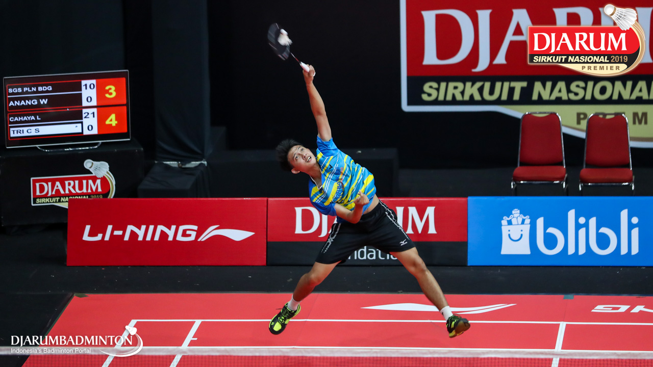 Tri Cahya Suprianto (Cahaya Lumajang) menyambut shuttlecock
