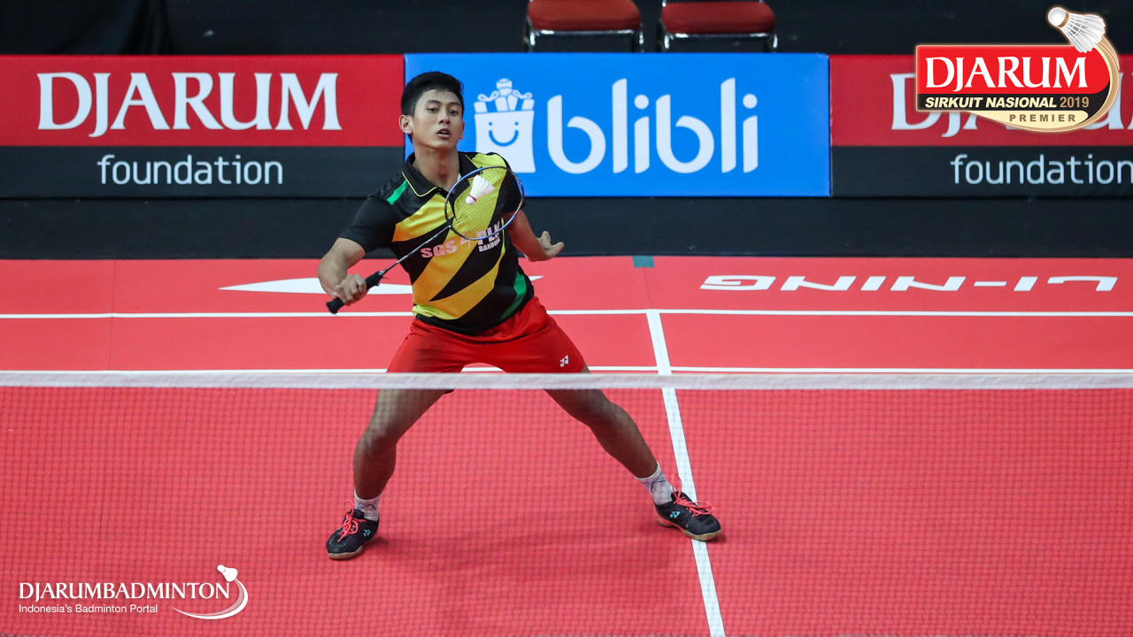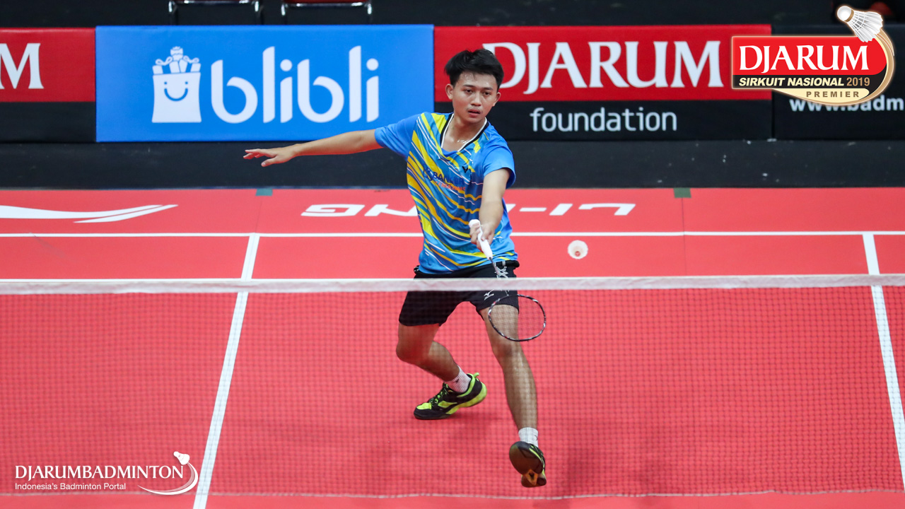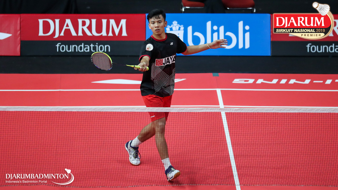 Made Deco Setya Atmaja (Jaya Raya Jakarta) bersiap menyambut shuttlecock