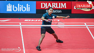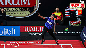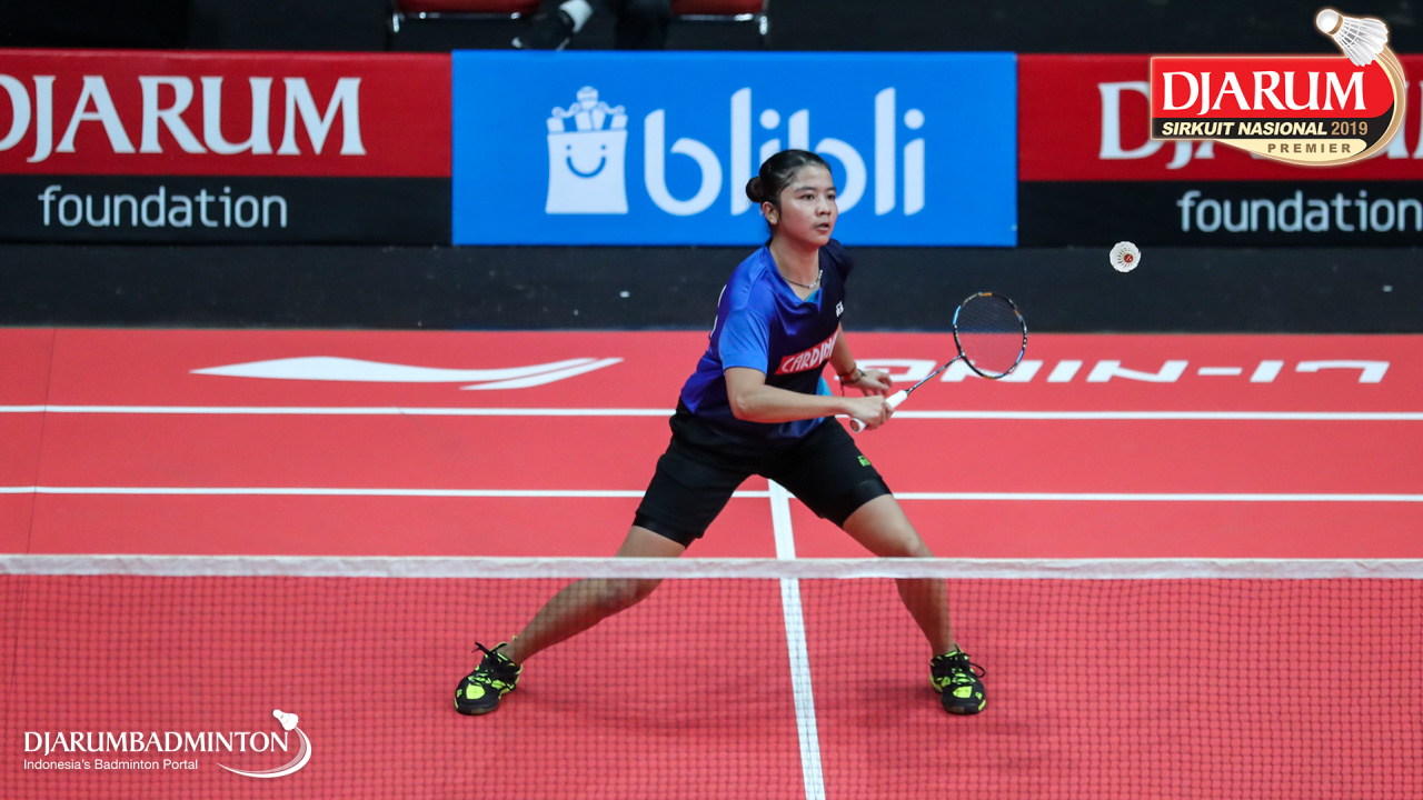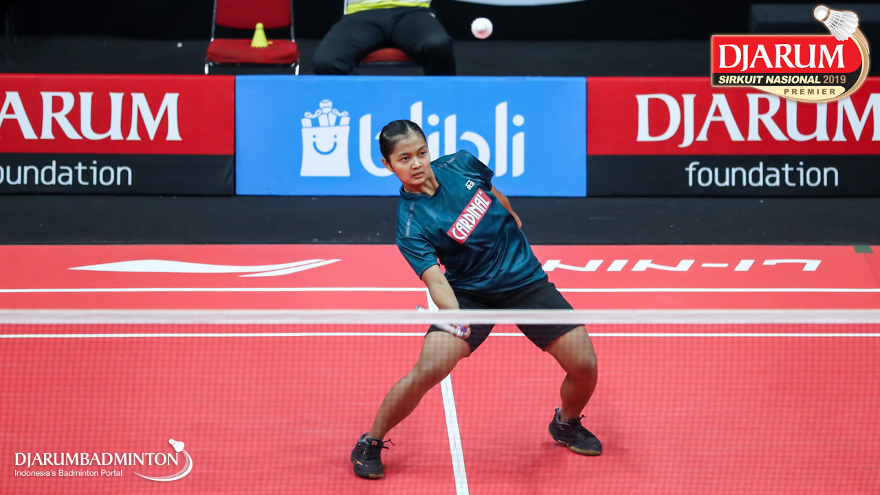 Gina Revina Aristy (Mutiara Cardinal, Bandung) menyambut shuttlecock