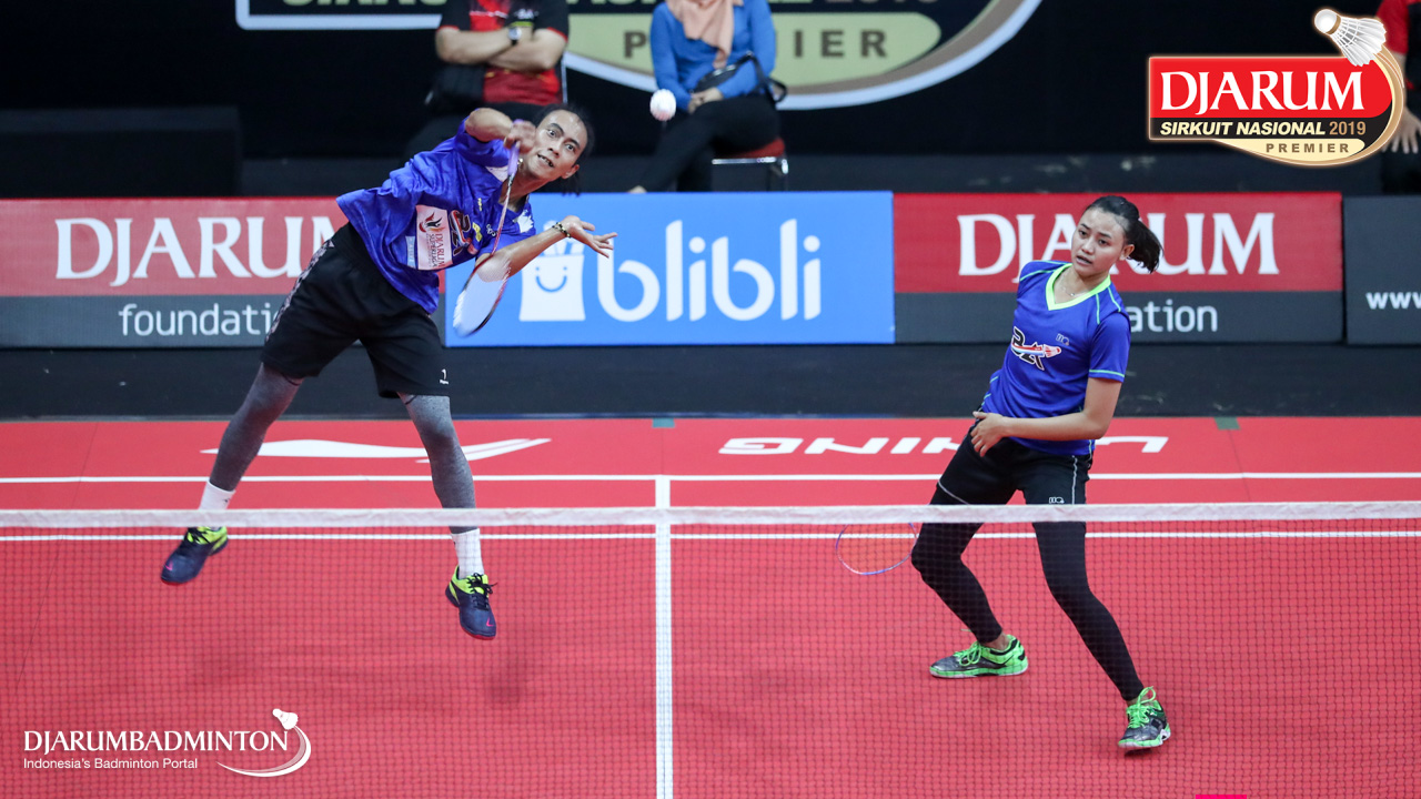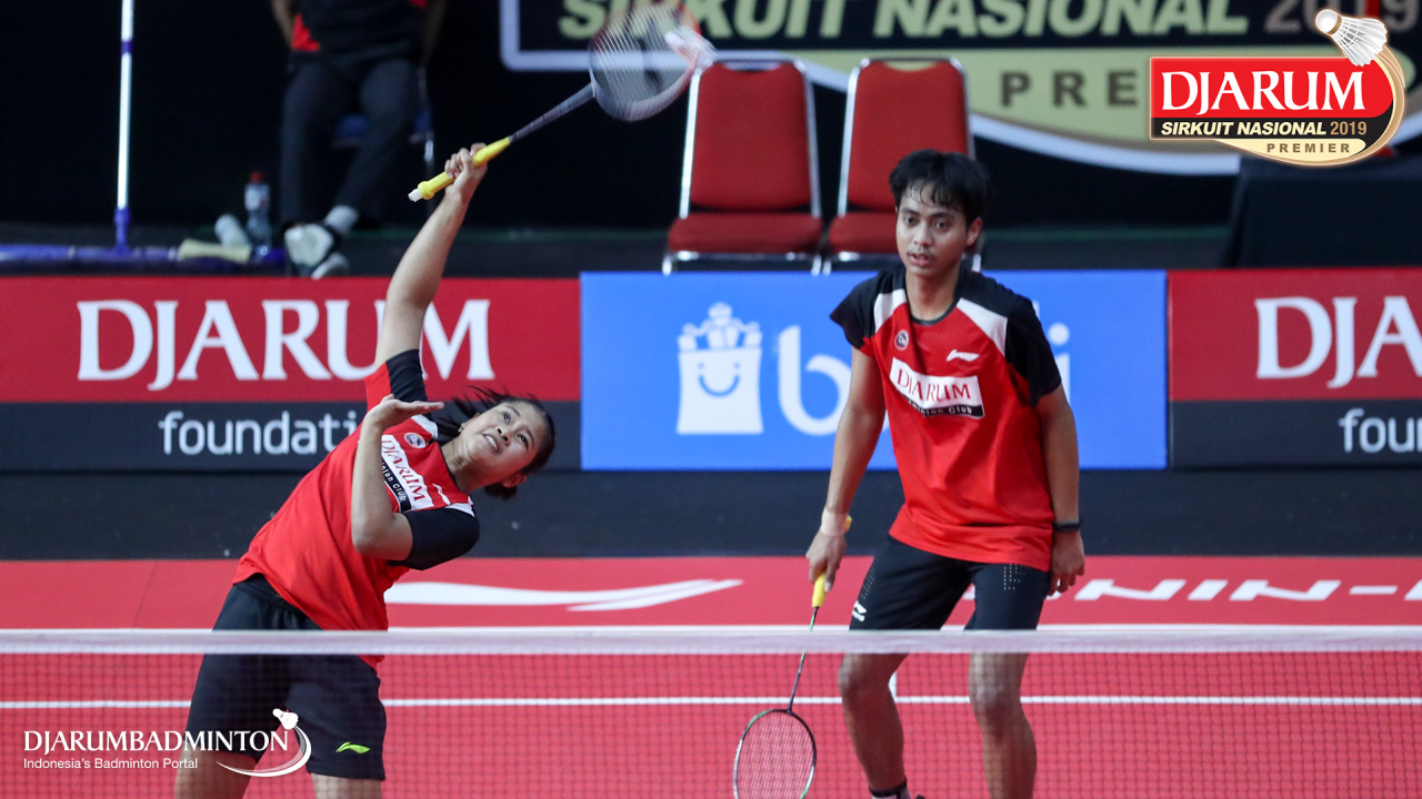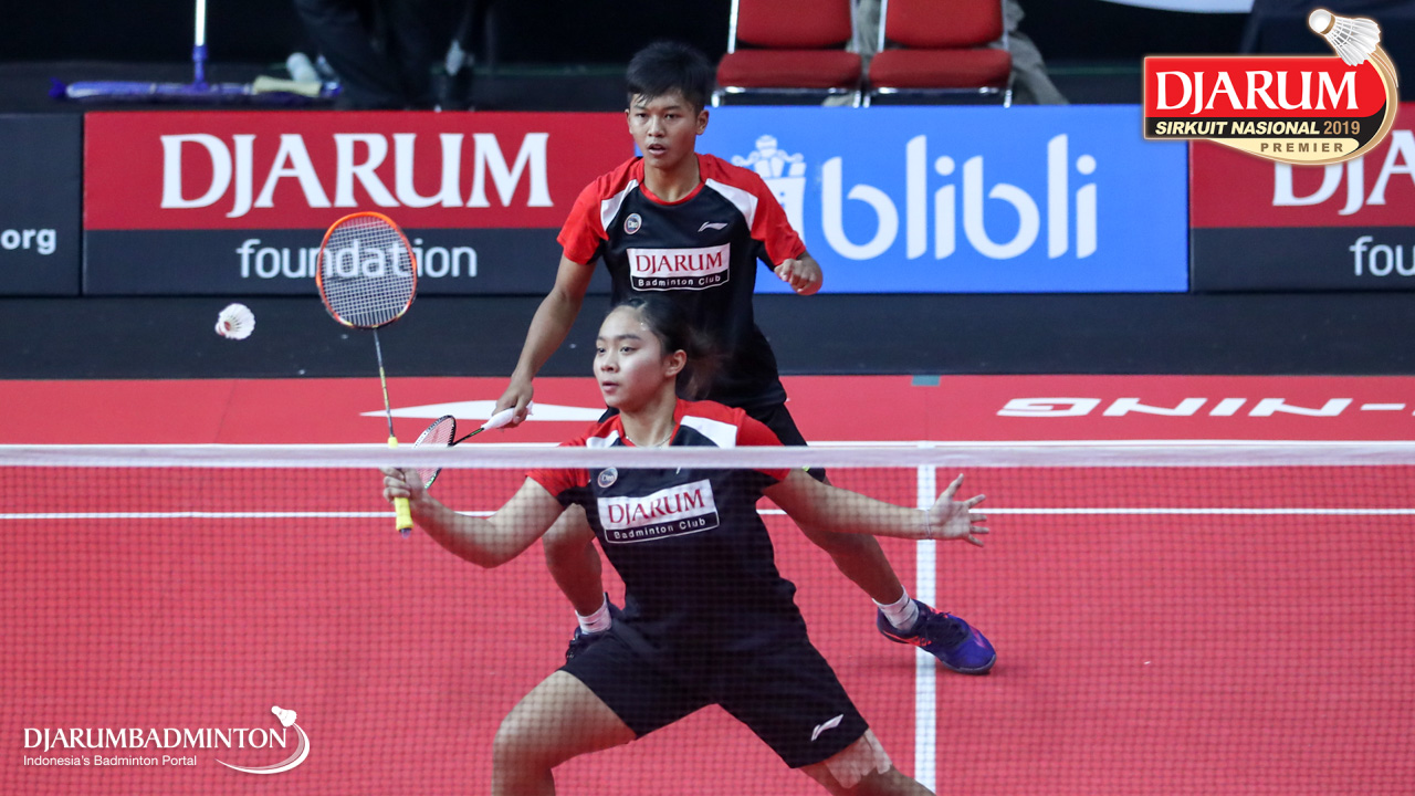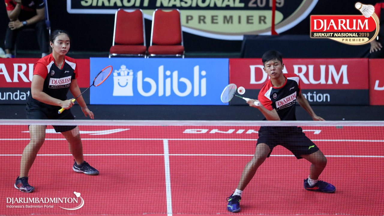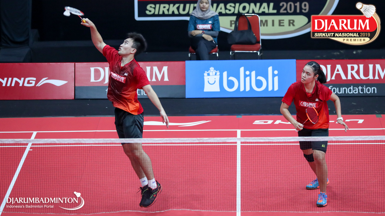 Mochamad Rafi Rizqi Kurniawan+Berliona Alma Pradisa (PB Djarum, Kudus) mengembalikan shuttlecock