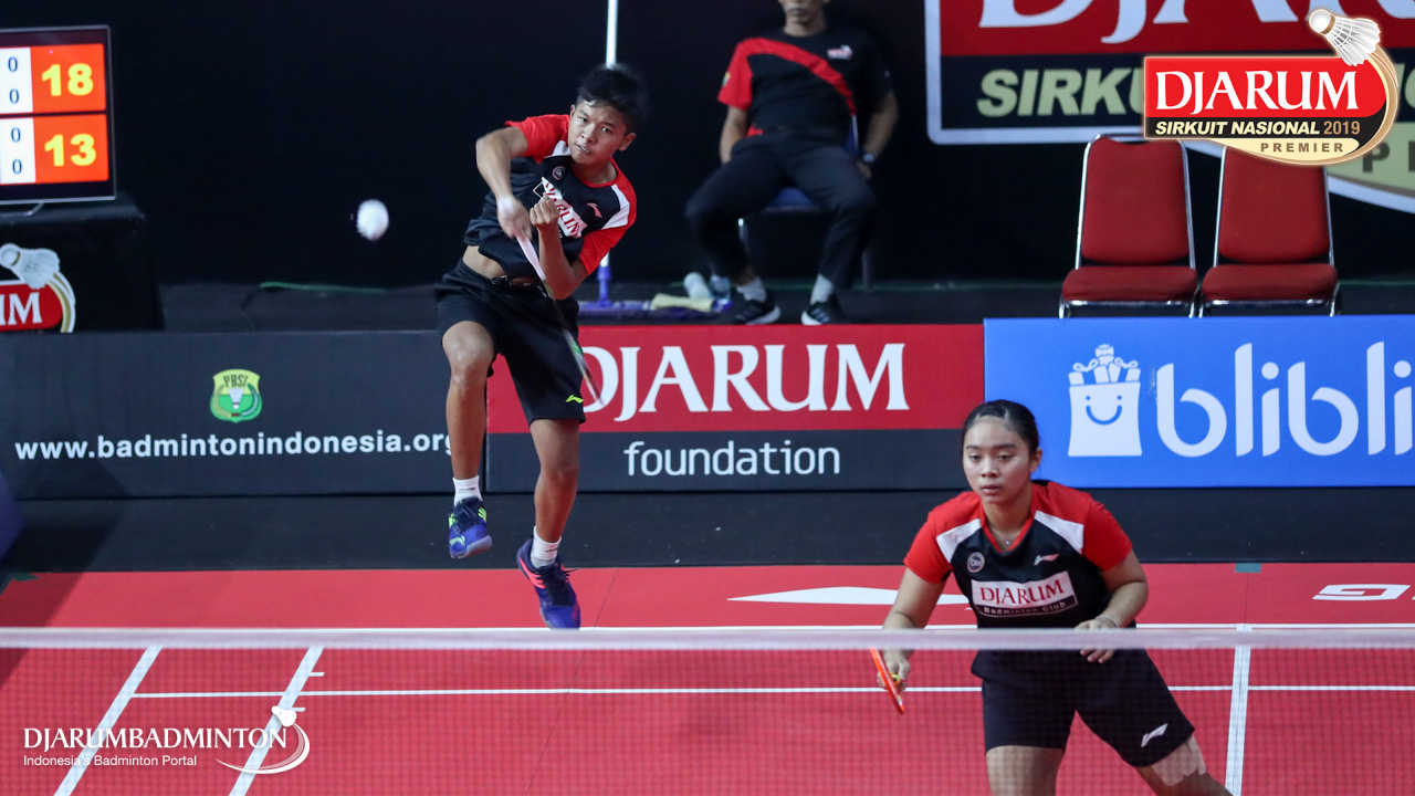 Mochamad Rafi Rizqi Kurniawan+Berliona Alma Pradisa (PB Djarum, Kudus) melepaskan serangan