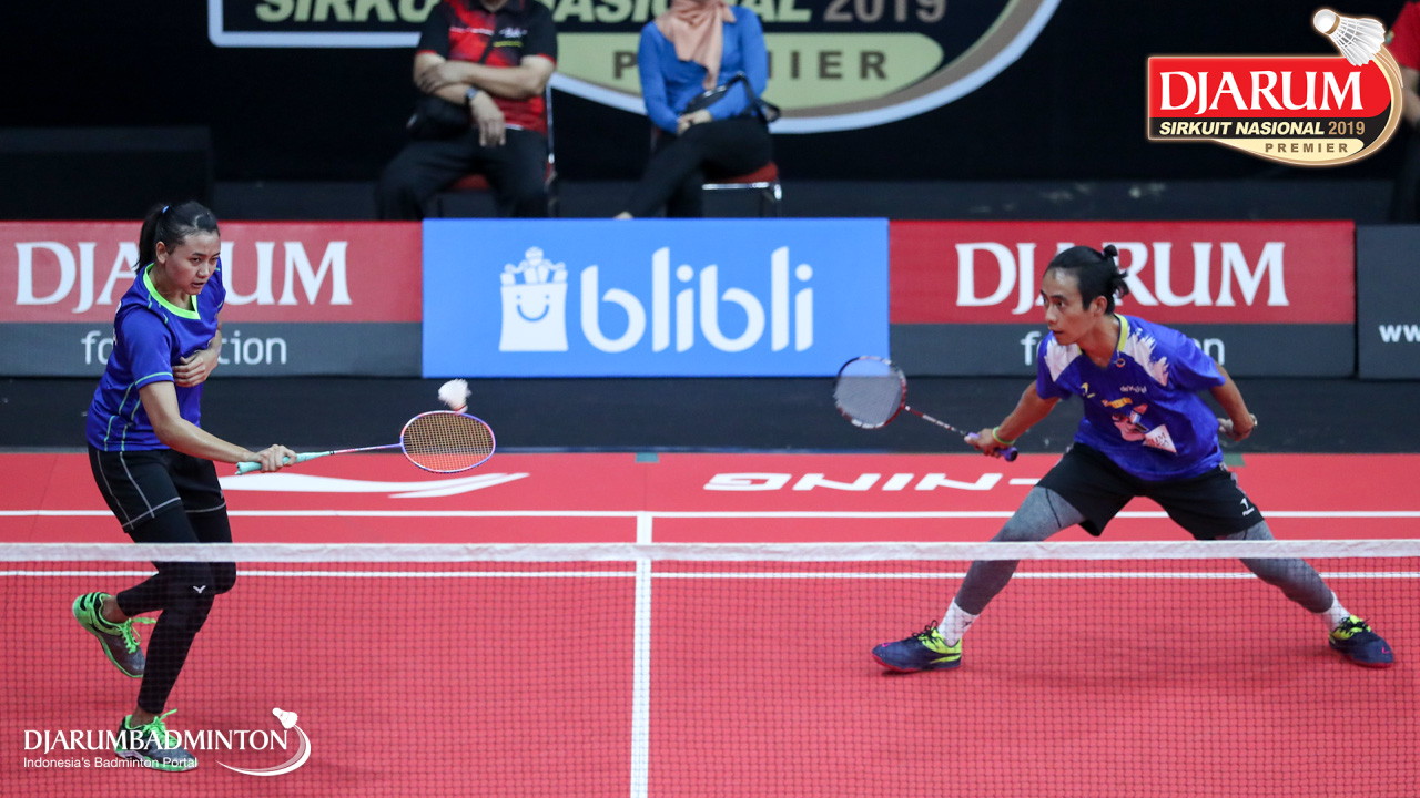 Agripina Primarahmanto Putera+Meirisa Cindy Sahputri (Berkat Abadi, Banjar) mengembalikan shuttlecock