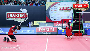 Selebrasi kemenangan Rahmat Hidayat+Febi Setianingrum (PB Djarum, Kudus)