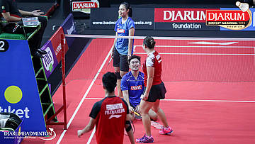Asghar Herfanda+Sang Ayu Putu Kharisma Maharani (PB Djarum, Kudus) mengembalikan shuttlecock