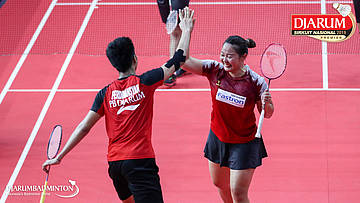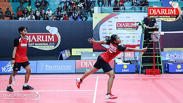 Rahmat Hidayat+Febi Setianingrum (PB Djarum, Kudus) menyambar shuttlecock