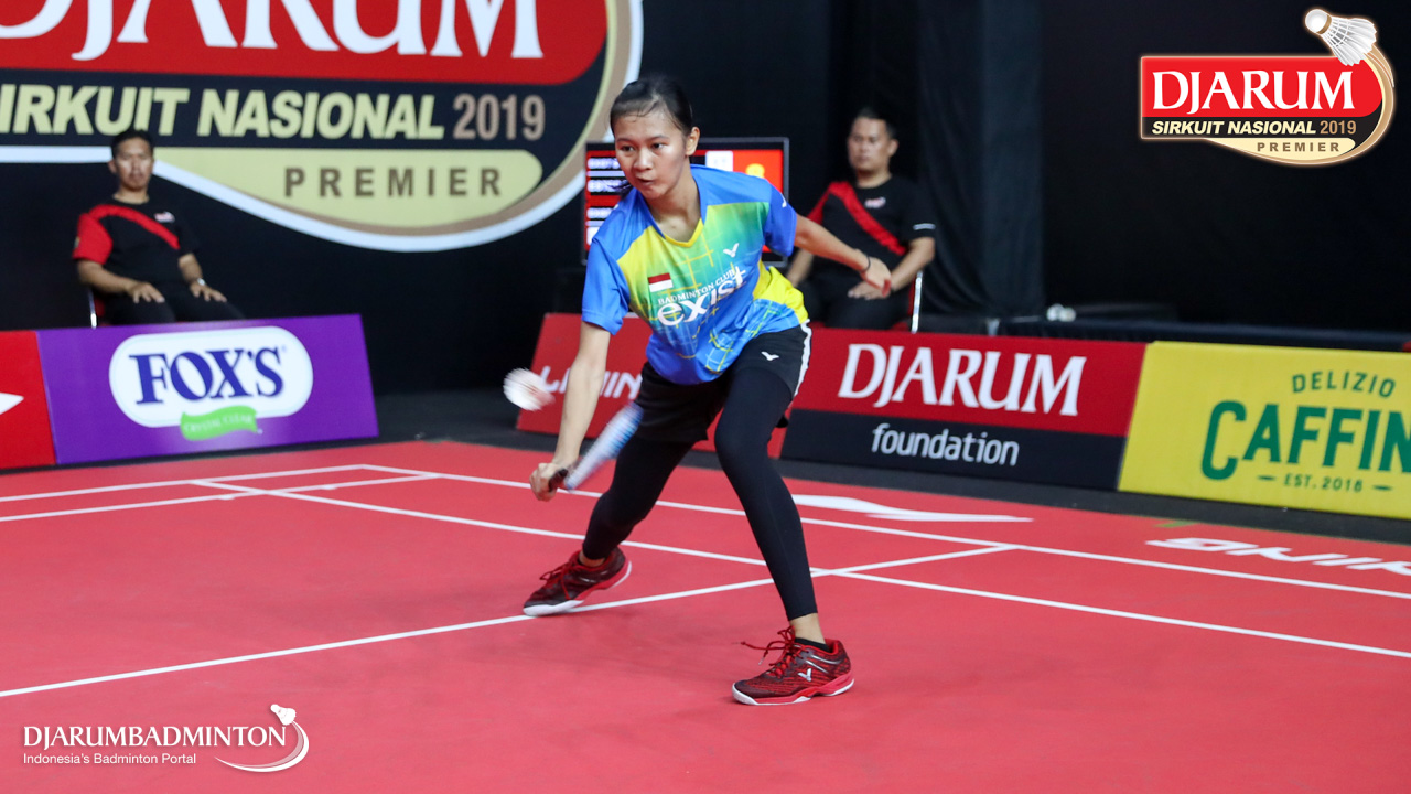 Siti Sarah Azzahra (Exist Badminton Club) menyambut shuttlecock