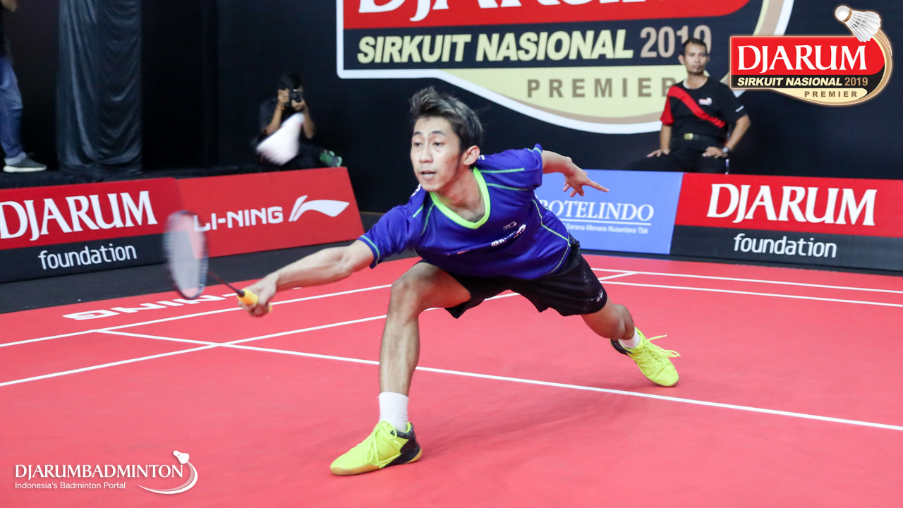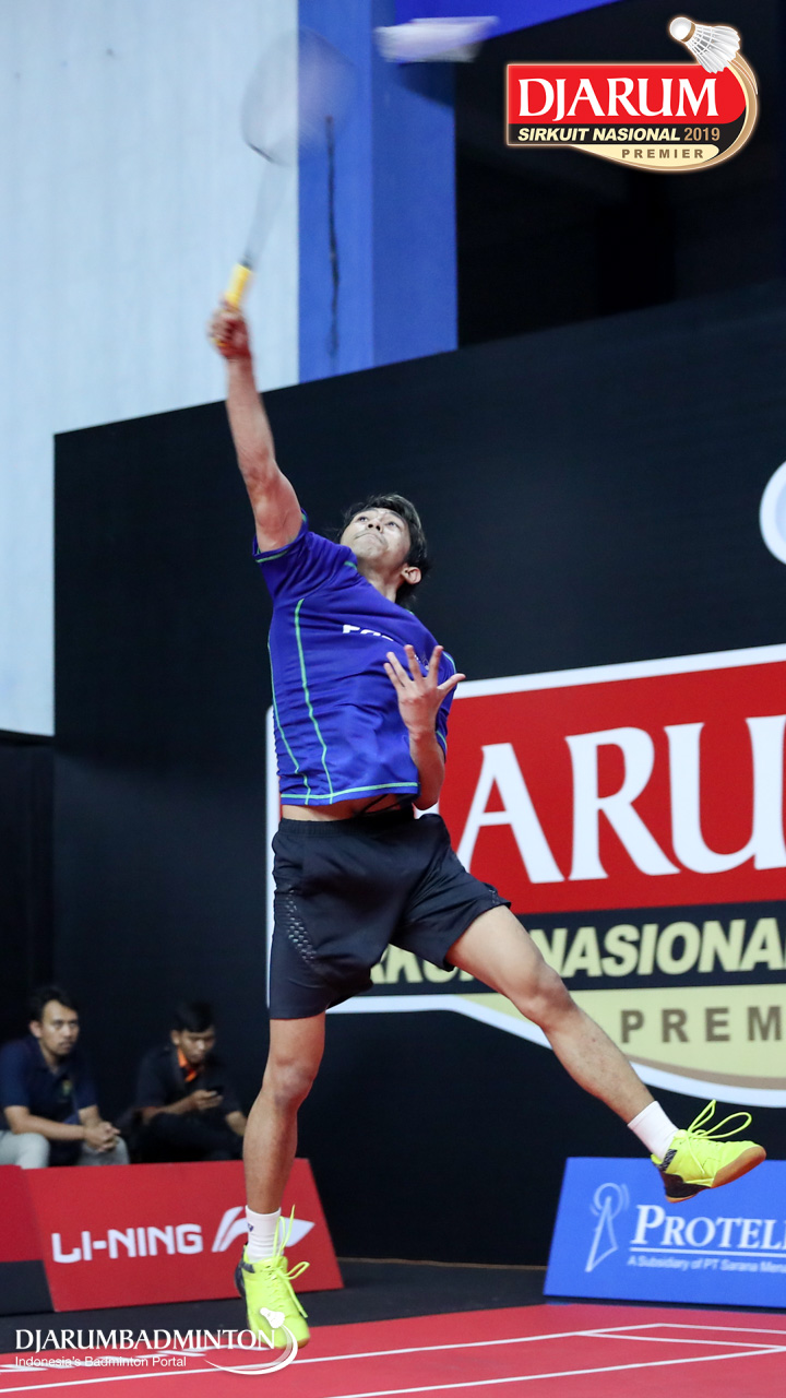 Andi Fadel Muhammad R (Daihatsu Candra Wijaya) menyambut shuttlecock