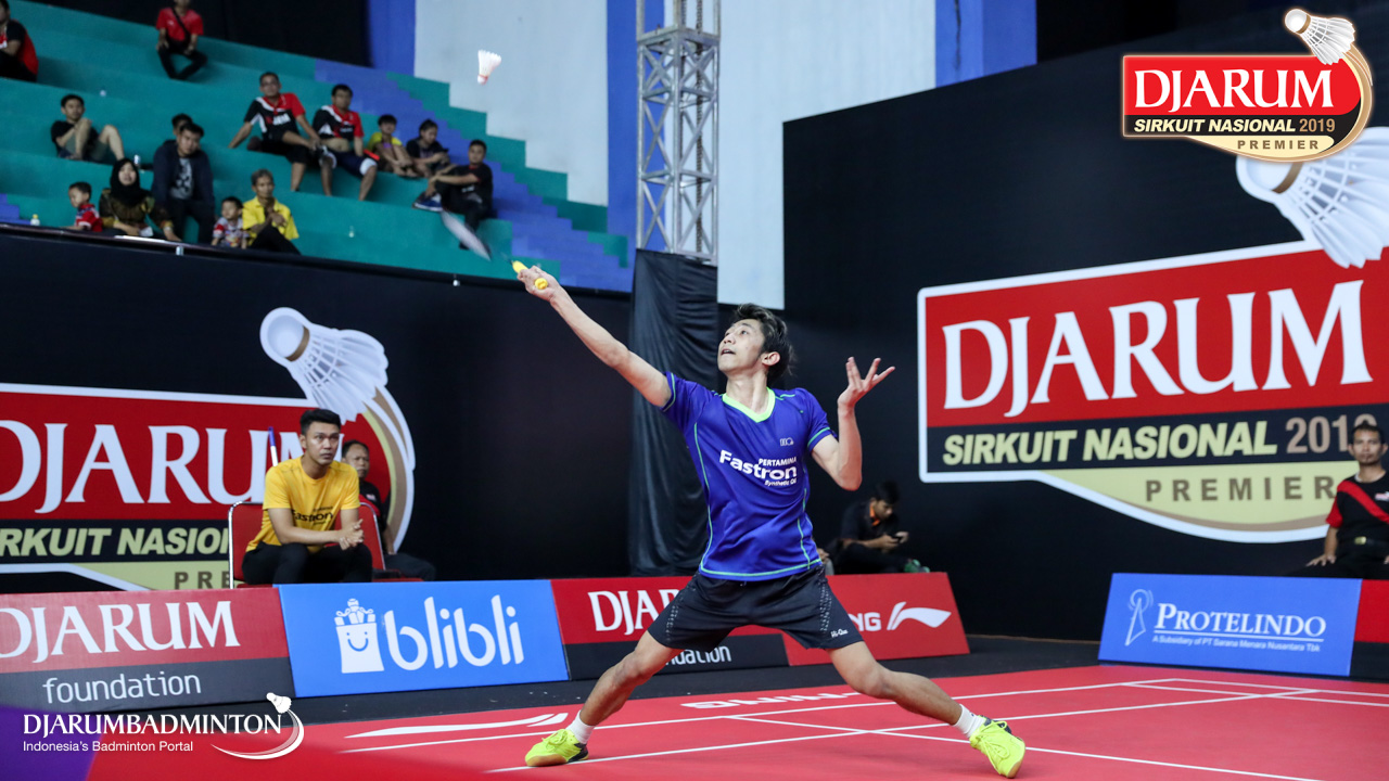 Wisnu Yuli Prasetyo (Pertamina Fastron, Jakut) bersiap menyambut shuttlecock