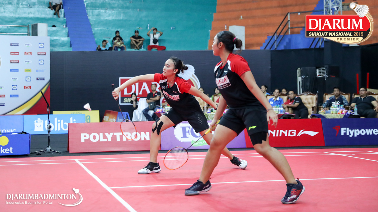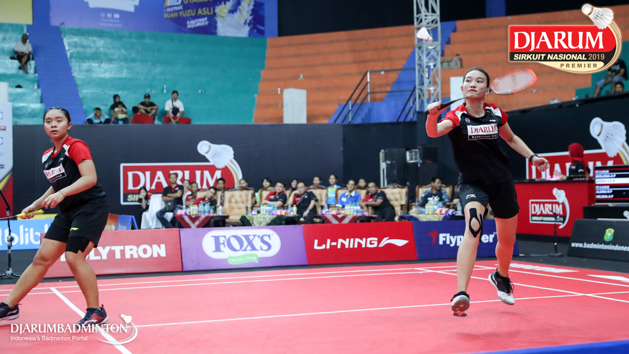 Berliona Alma Pradisa+Jovika Vandaria Ester Matiho (PB Djarum, Kudus) menyambut shuttlecock