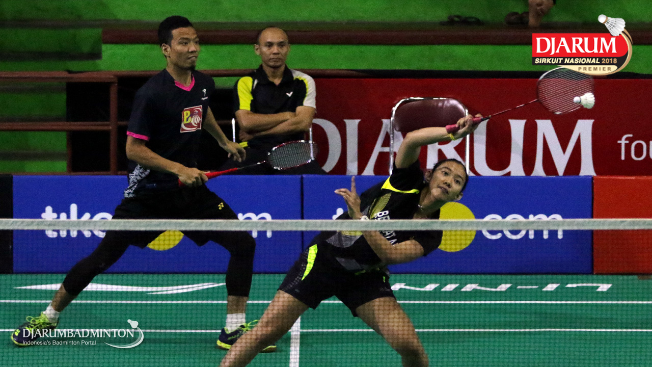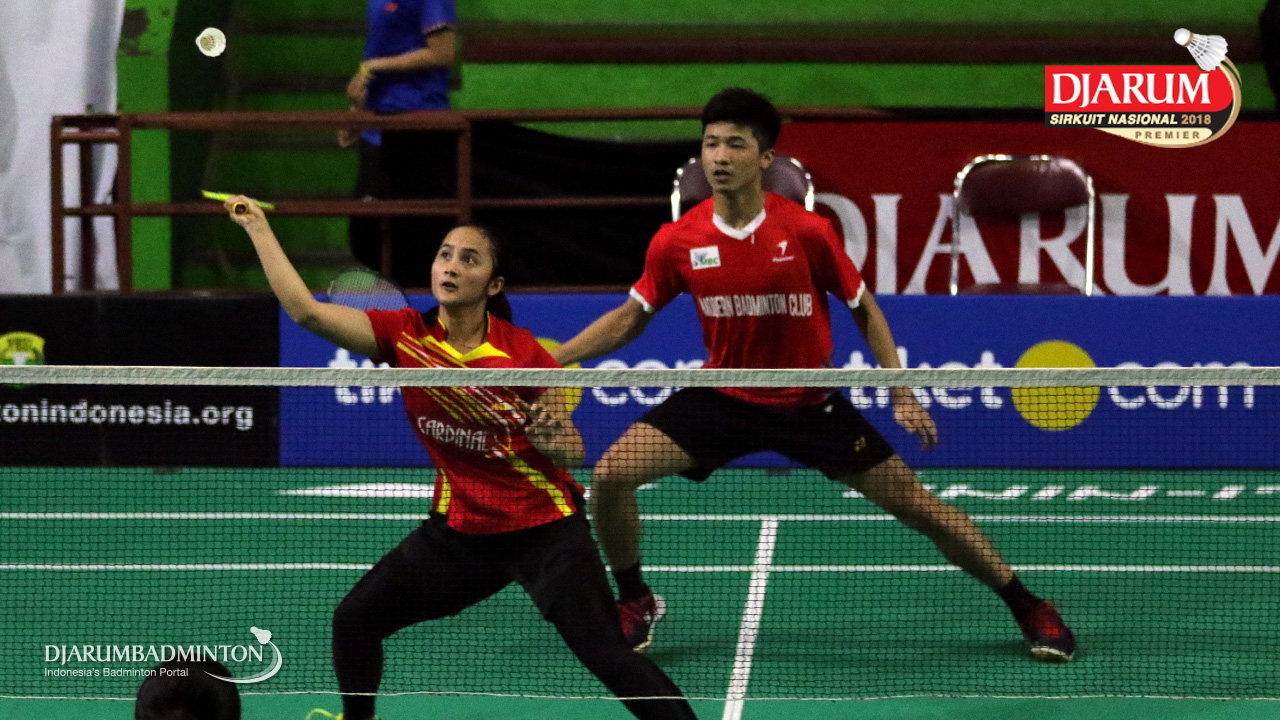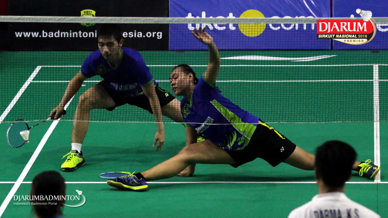 I Kadek Pande Dheva Brahmantya Putra/Sintia Dewi Yuliani (PB Djarum Kudus) Mengembalikan Shuttlecock