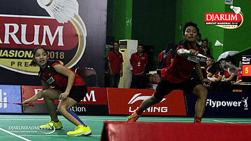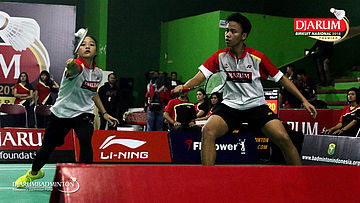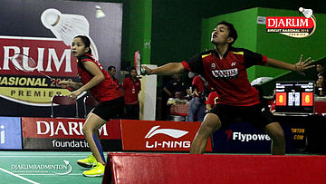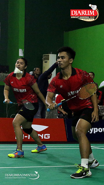 Adnan Maulana/Masita Mahmudin (Jaya Raya Jakarta) Mengembalikan Shuttlecock