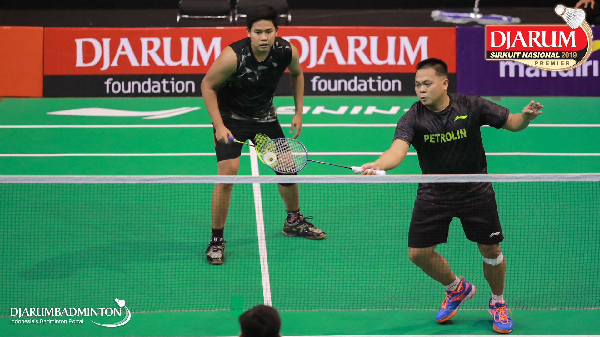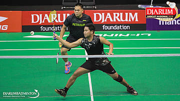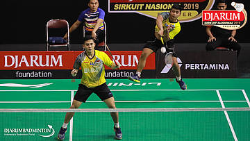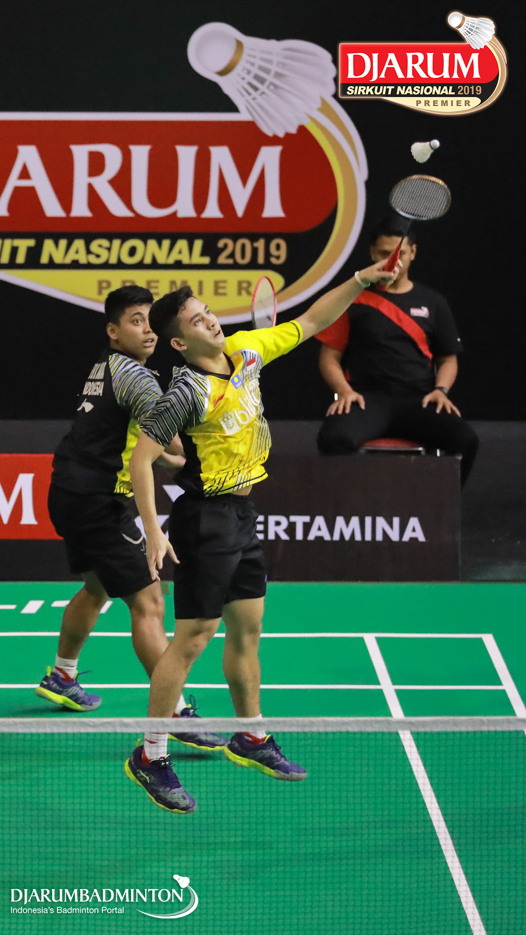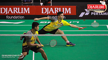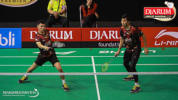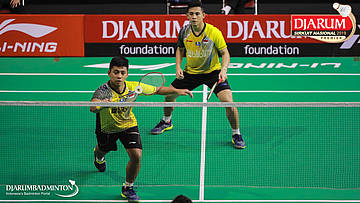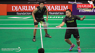 Irfan Fadhillah+Markis Kido (Jaya Raya Jakarta) menyambut shuttlecock