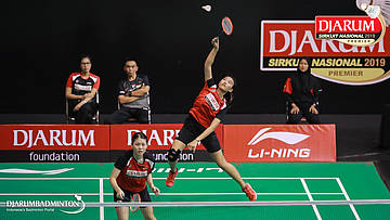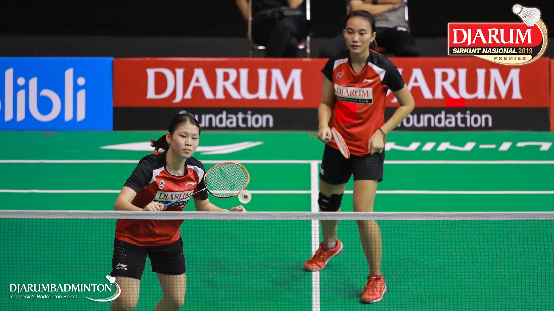 Helena Ayu Puspitasari+Jovika Vandaria Ester Matiho (PB Djarum, Kudus) menggapai pengembalian