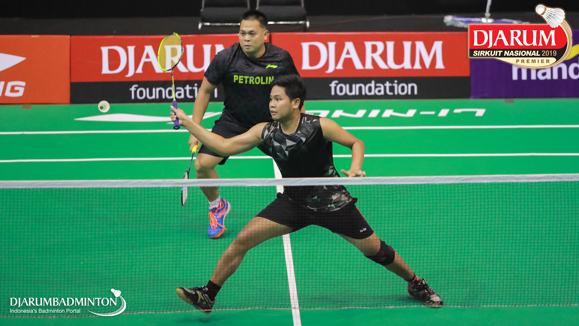 Bernadus Bagas Kusuma Wardana+Dwiki Rafian Restu (Pelatnas) mengembalikan serangan