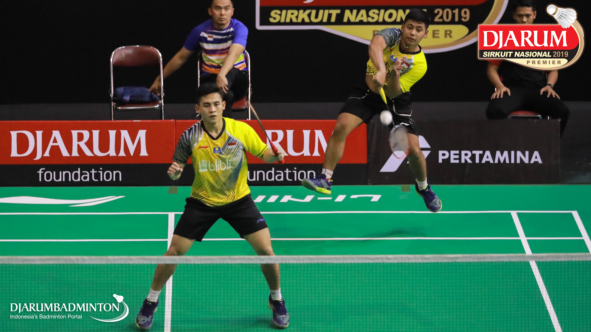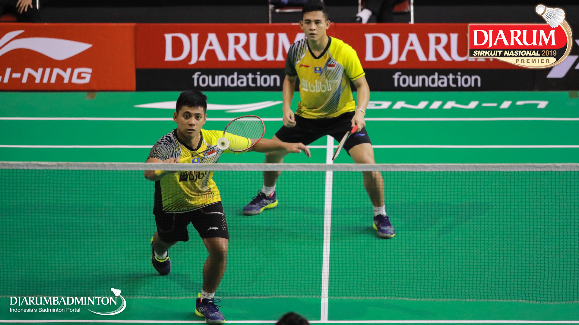 Bernadus Bagas Kusuma Wardana+Dwiki Rafian Restu (Pelatnas) bersiap mengembalikan shuttlecock
