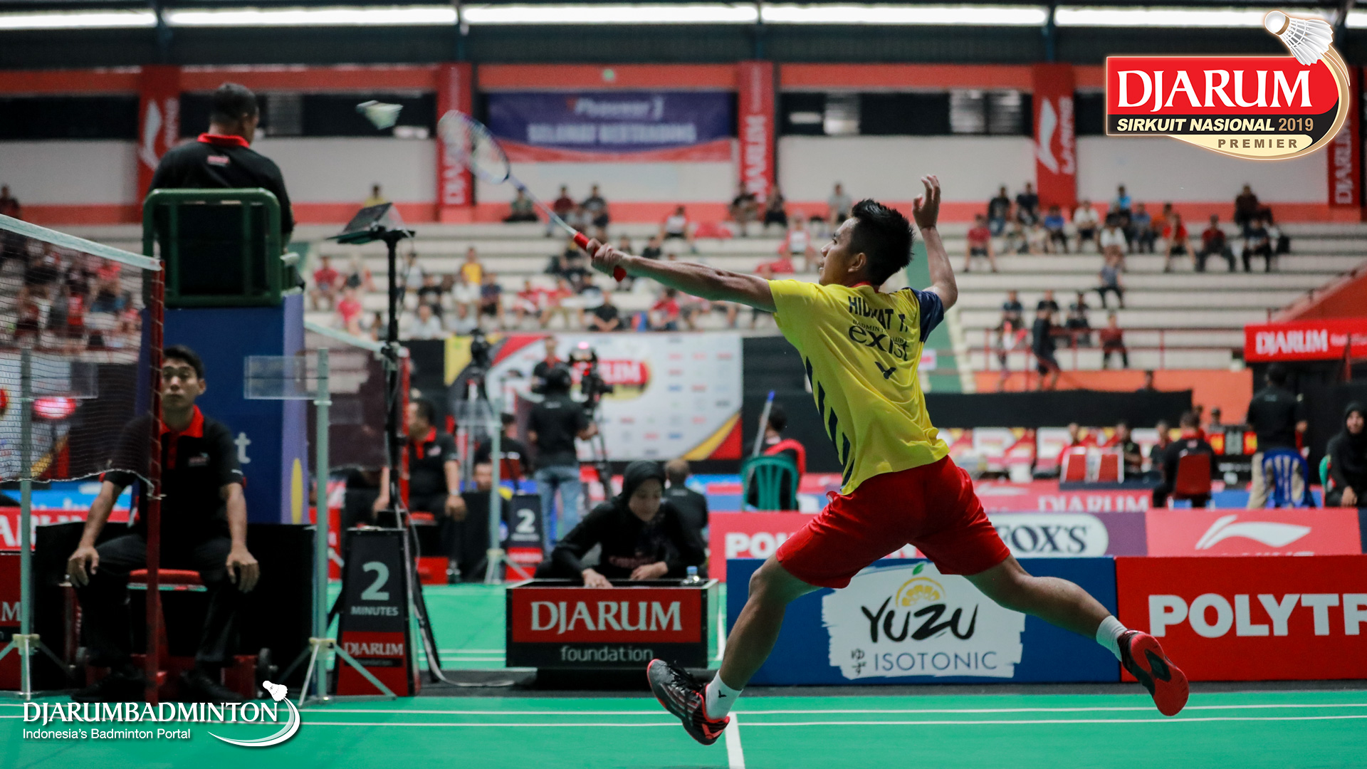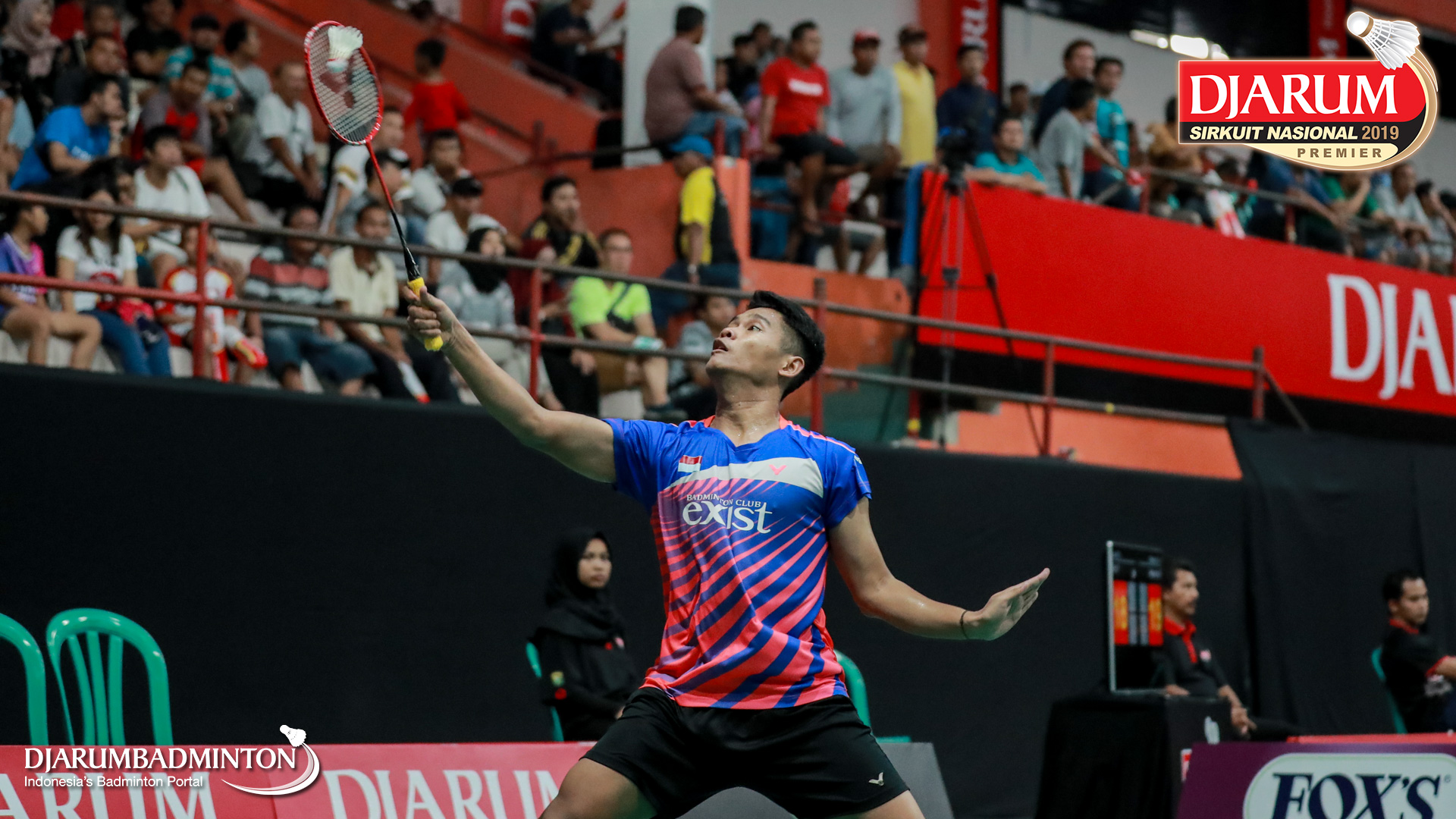Muhammad Iqbal (Exist Badminton Club) berusaha menyambut serangan