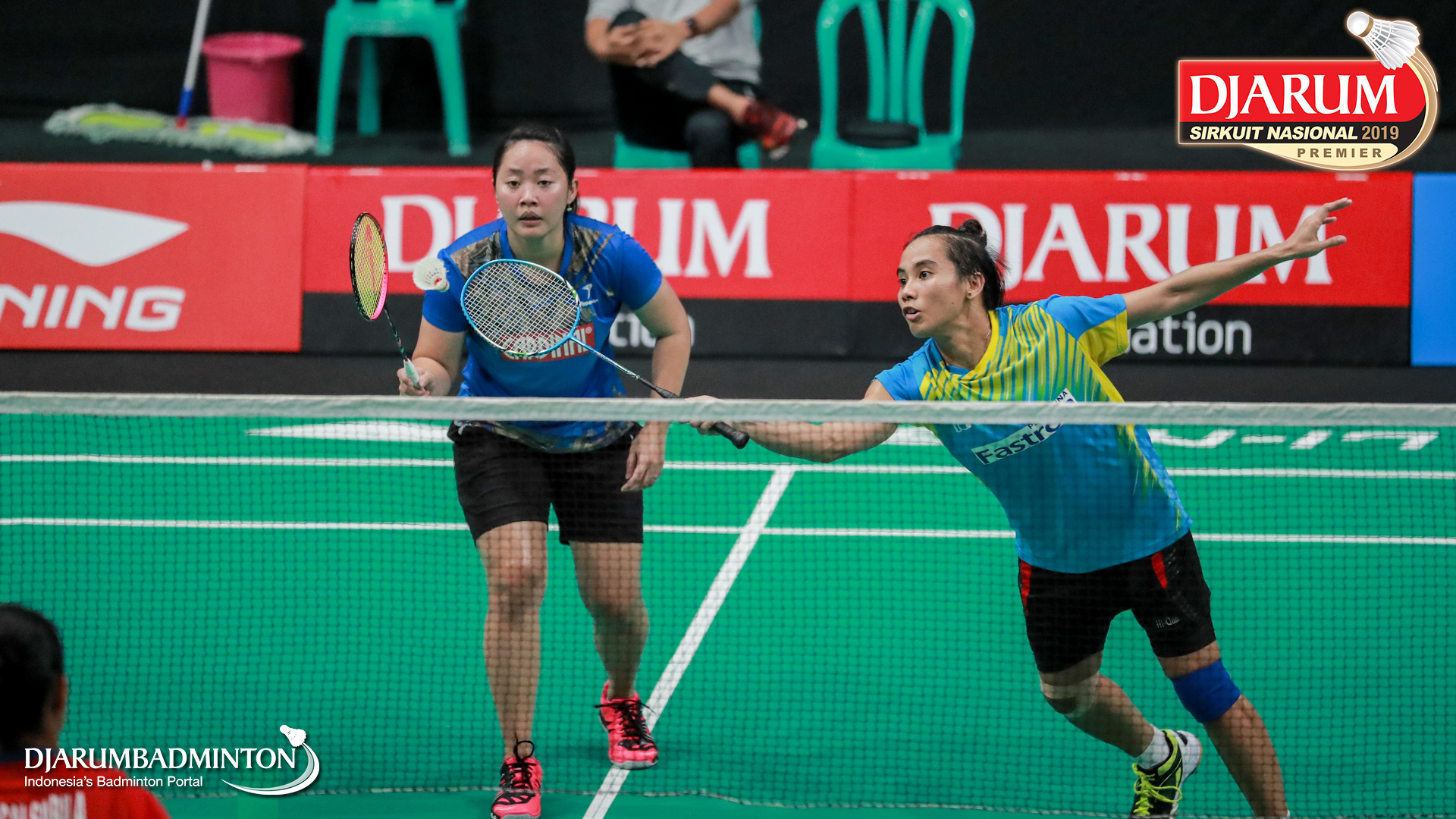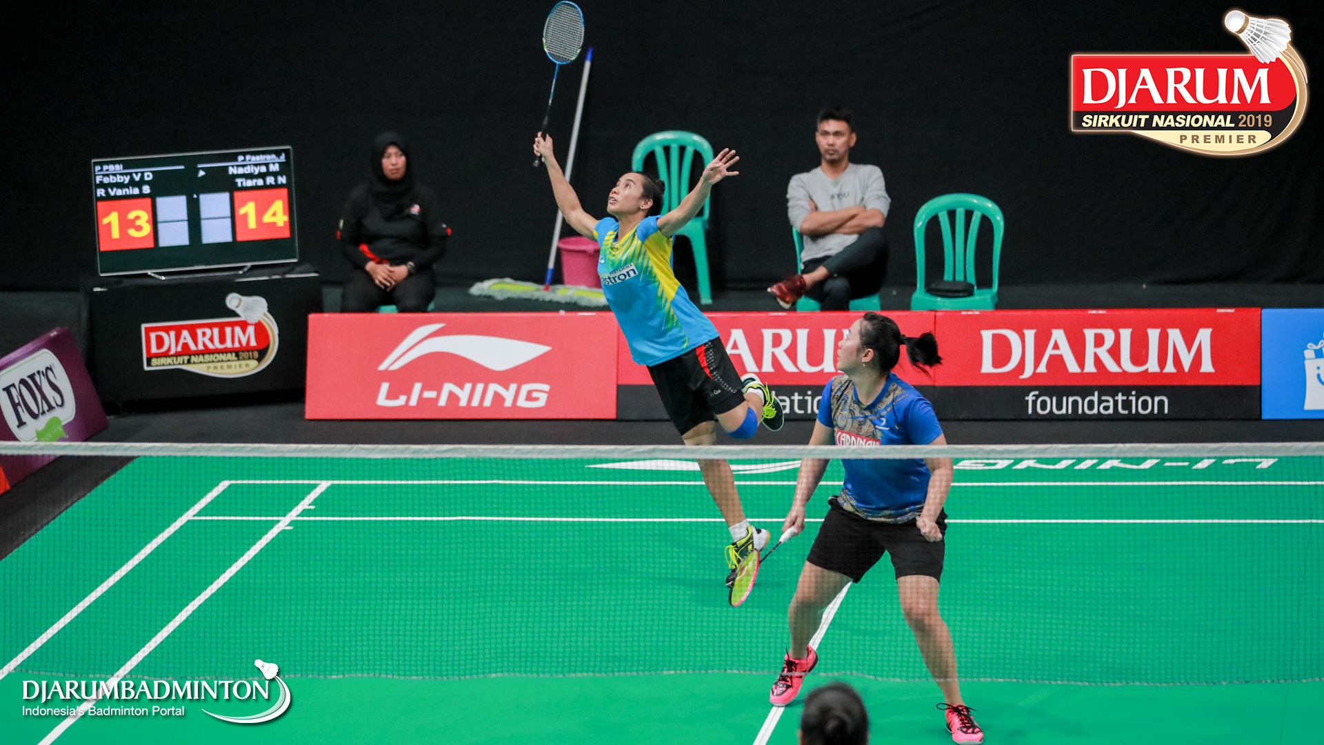 Nadiya Melati+Tiara Rosalia Nuraidah (Pertamina Fastron, Jakut+Mutiara Cardinal, Bandung) menyambar pengembalian