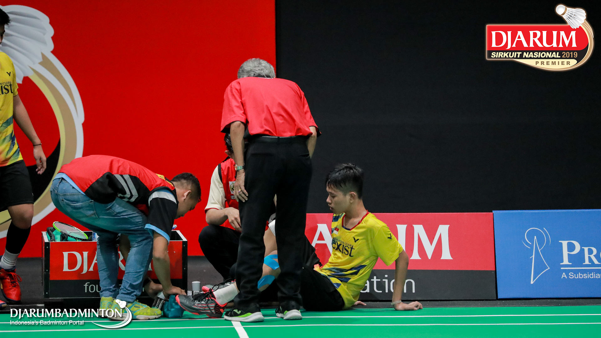 M. Rizky Syahendra (Exist Badminton Club) saat dalam penanganan team medis