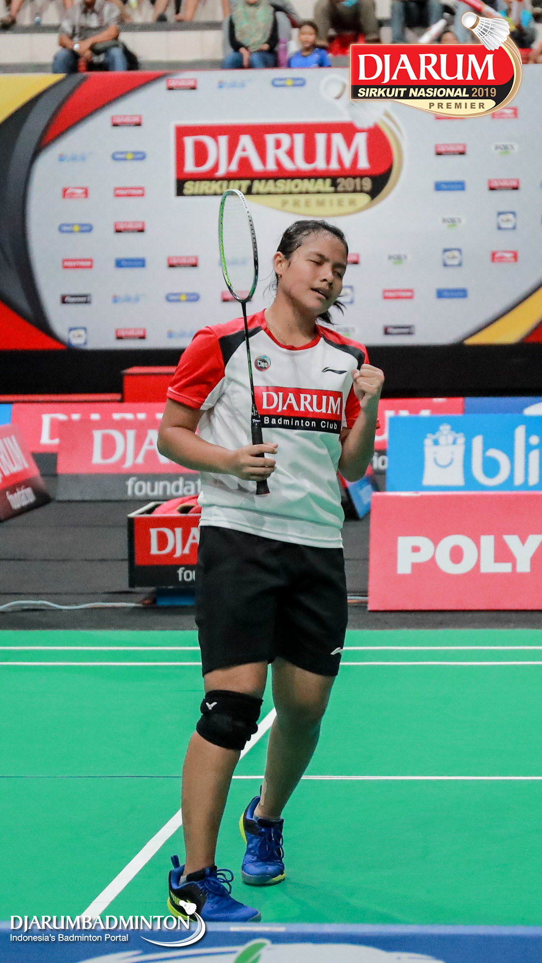 Selebrasi kemenangan Komang Ayu Cahya Dewi (PB Djarum, Kudus)