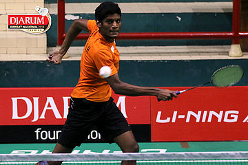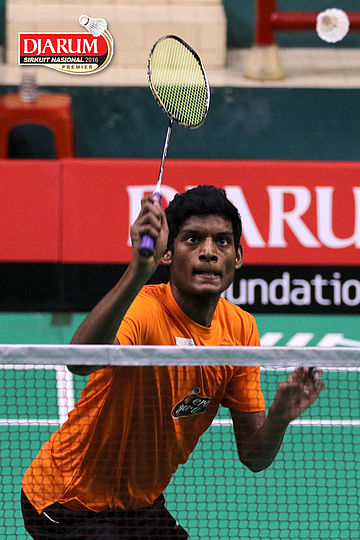 Madugula Mohit (India) Mengembalikan Shuttlecock.