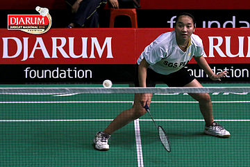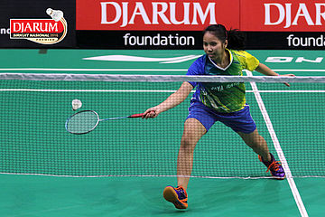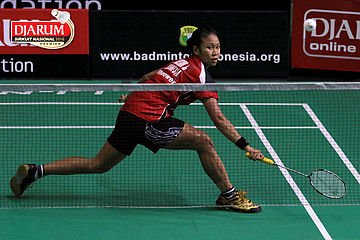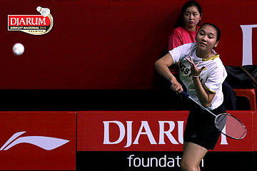 Ghina Nusrini (Djarum Kudus) Mengembalikan Shuttlecock.