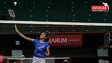 Savira Sandradewi (PB Djarum Kudus) bersiap menghadang serangan