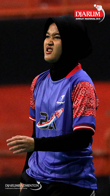 Silvi Wulandari (Berkat Abadi) mengembalikan shuttlecock