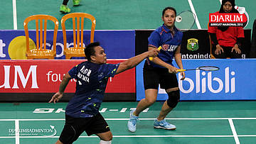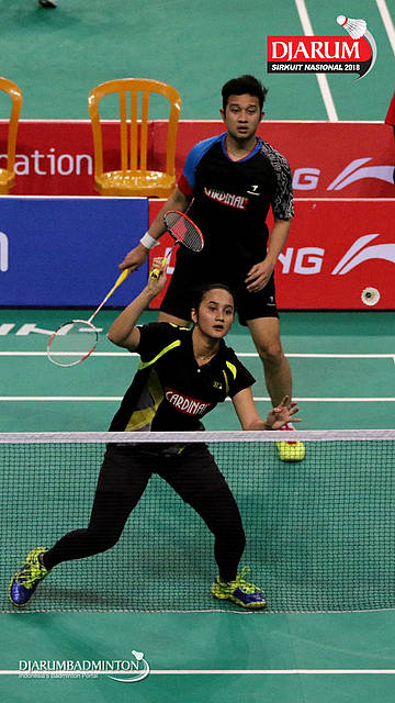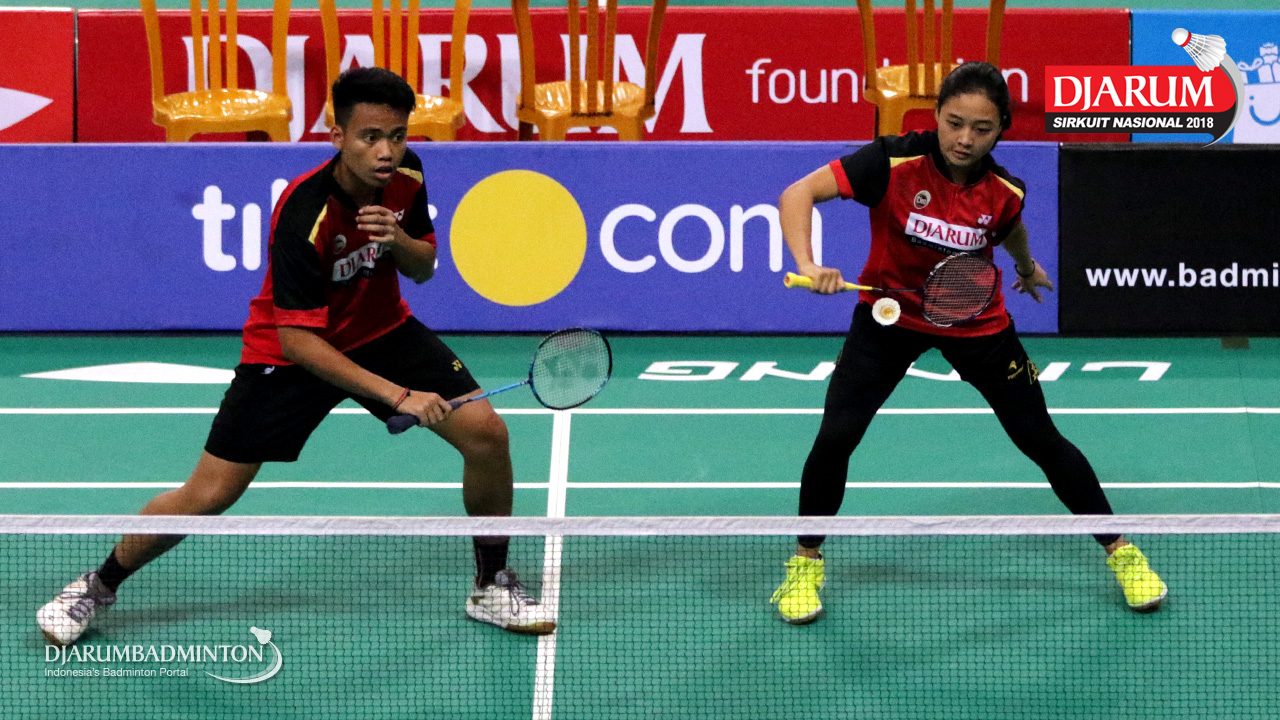 I Kadek Pande Dheva Brahmantya Putra/Sintia Dewi Yuliani (PB Djarum Kudus) bersiap menghadang serangan