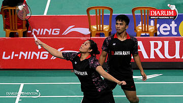 Reinard Dhanriano/Maretha Dea Giovani (Mutiara Cardinal) menyambut pengembalian