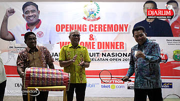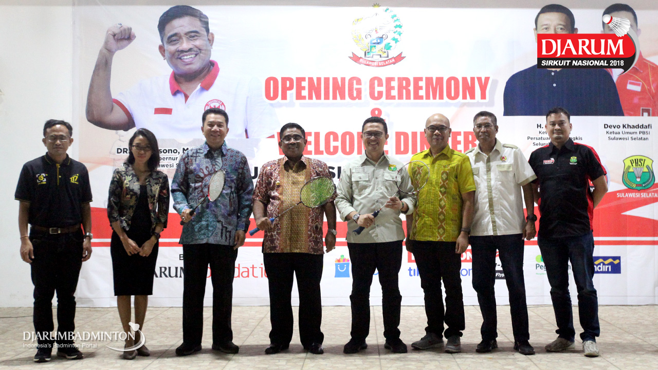 PJ Gubernur Sulawesi Selatan, Dr. Sumarsono (kiri) dan Sekjen PP PBSI, Ahmad Budiarto (kanan) secara resmi membuka gelaran Djarum Sirkuit Nasional Sulawesi Selatan Open 2018, dalam acara Welcome Dinner