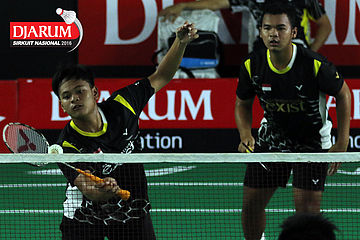 Farkhan Pandu/Yanuar Wahyu (Exist) menyambut serve.