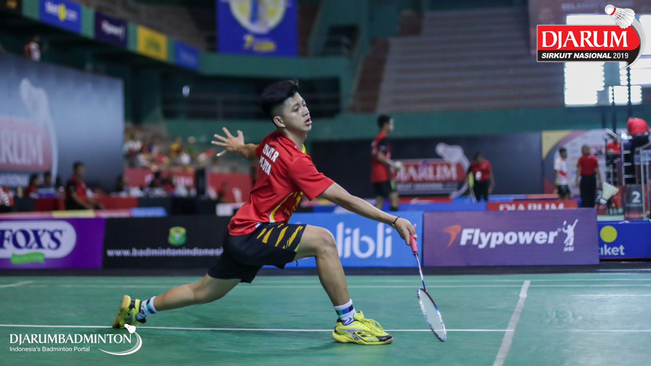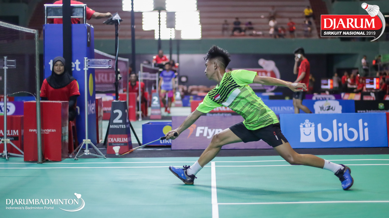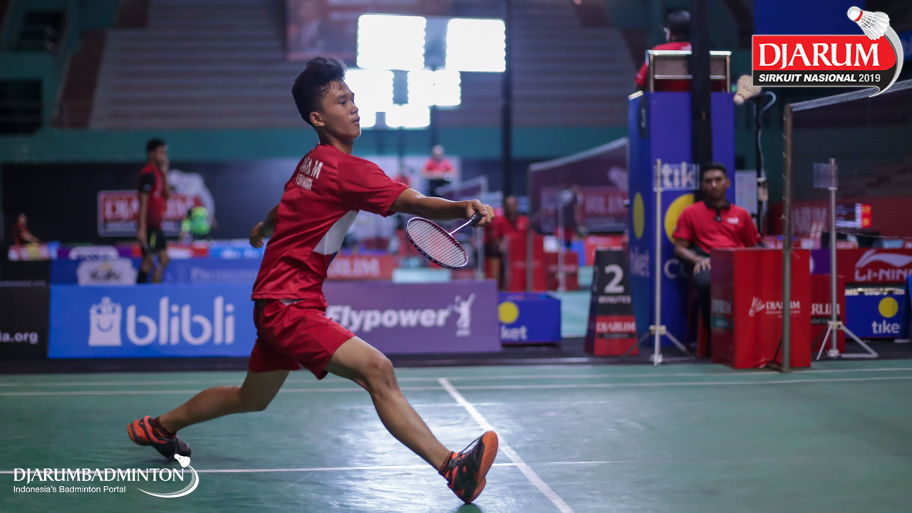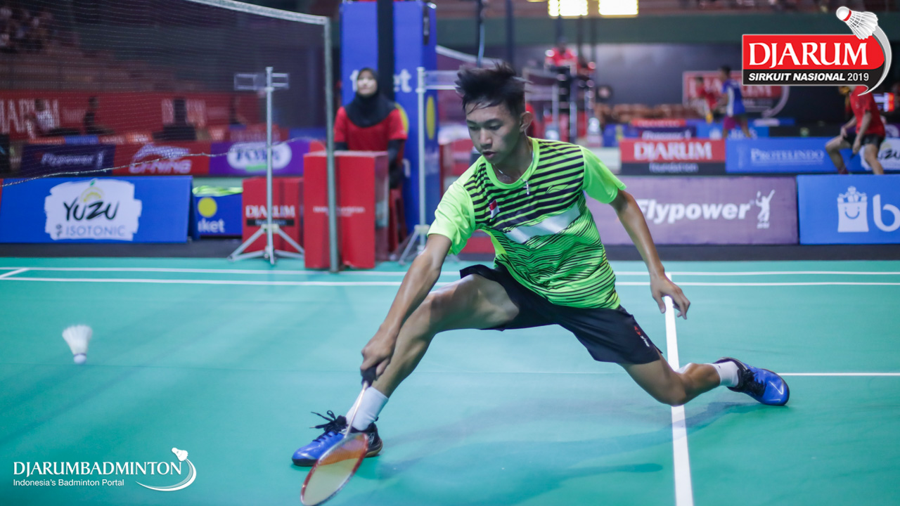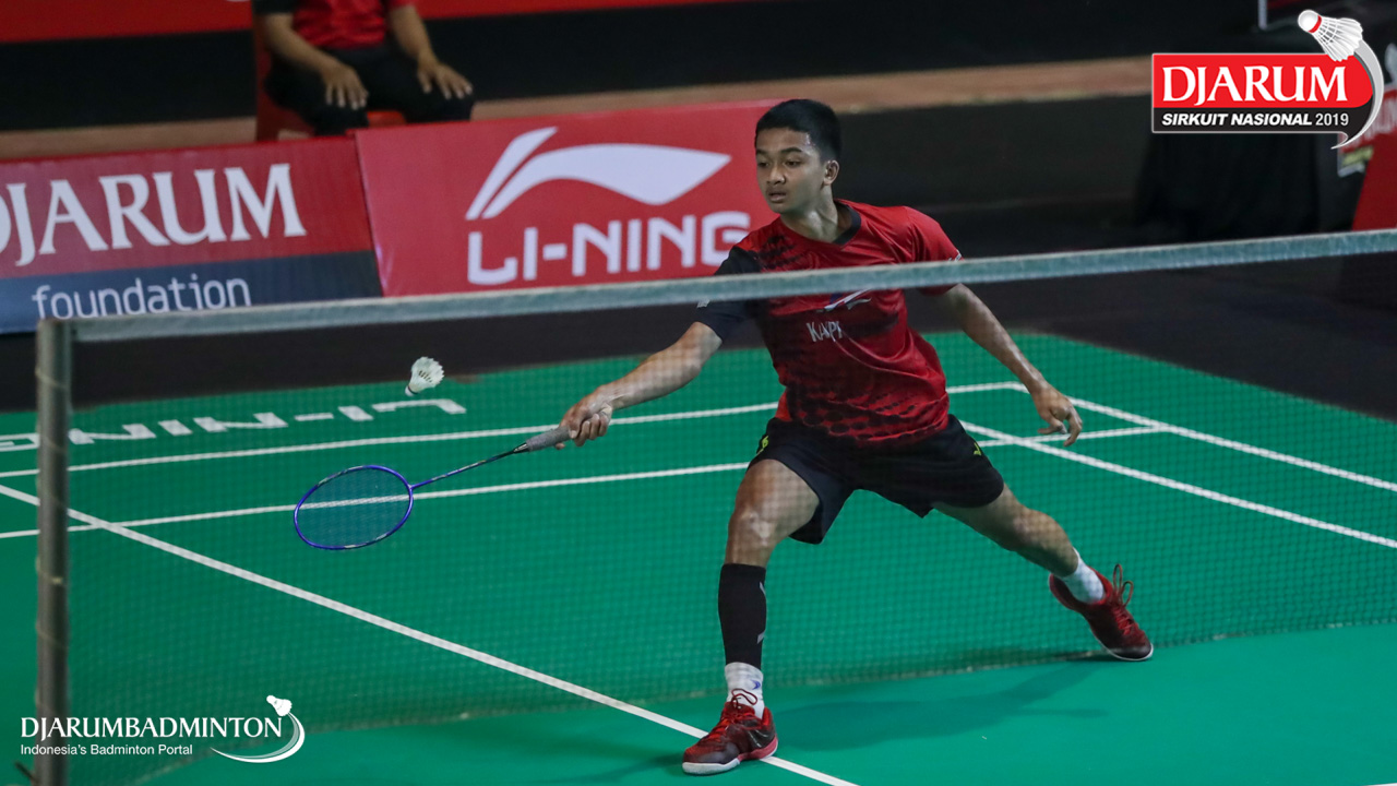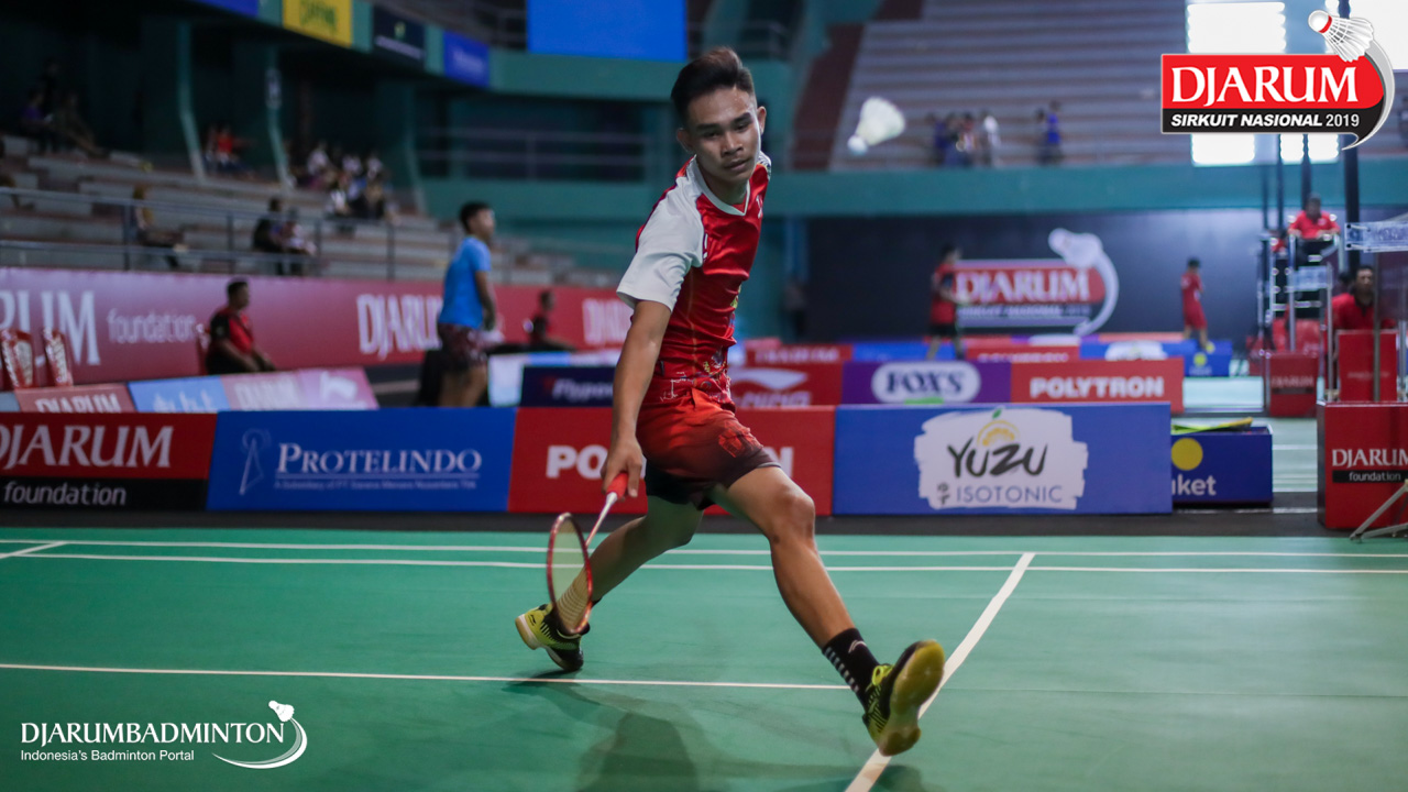 Hafiz Hidayatullah (Kaypi Badminton Club, Bogor) bersiap menyambut shuttlecock