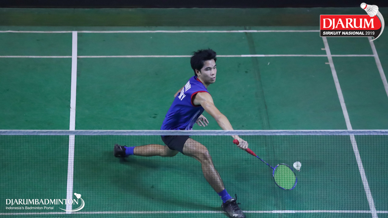 Gabriel Vincenzo Aprilio Tewuh (Bhayangkara Manado) menyambut shuttlecock