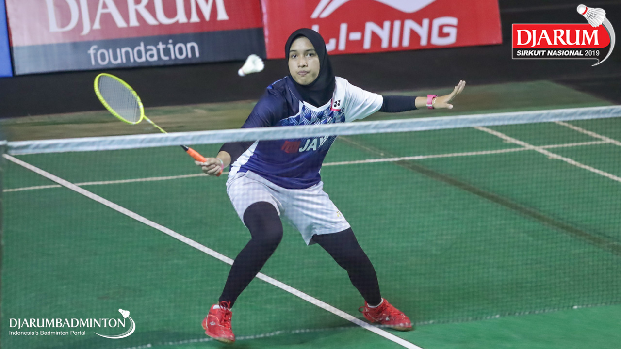 Sheila Dinda Kurniawan (Jaya Raya Jakarta) menyambut shuttlecock