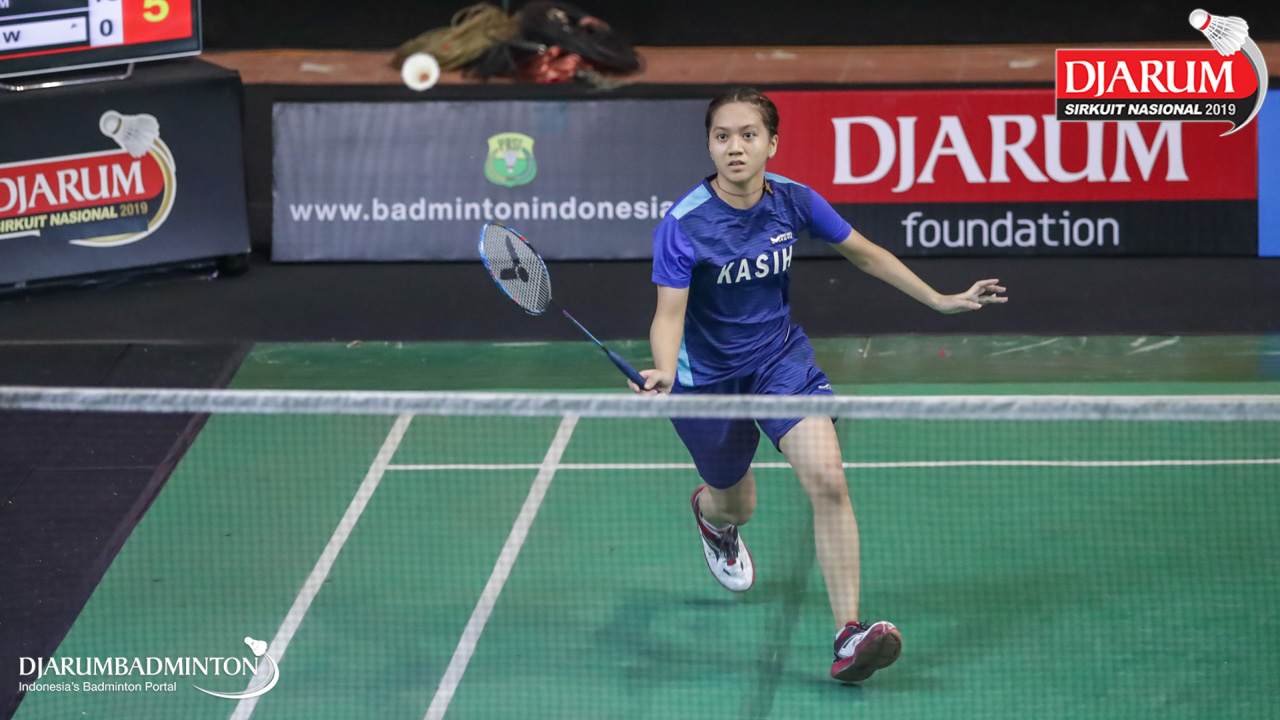 Sarah Daisy Theresia Christina Rambitan (Kasih, Jaksel) bersiap menyambut shuttlecock