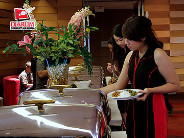 Perwakilan PT. Djarum Yan Haryadi saat akan menyantap makan siang sebelum dimulainya Press Conference Djarum Sirkuit Nasional 2013 di The Cone, F(X) Plaza Sudirman, Jakarta, Rabu (6/3).