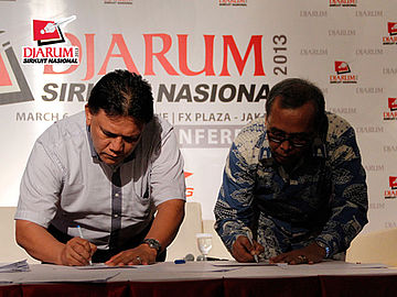 Perwakilan PBSI Lampung dan Sekjen PB PBSI Kusdarto Pramono sedang menandatangani perjanjian berjalannya Djarum Sirkuit Nasional 2013.