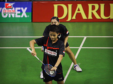 Ganda Campuran Dewasa bersiap menerima kok dari lawan