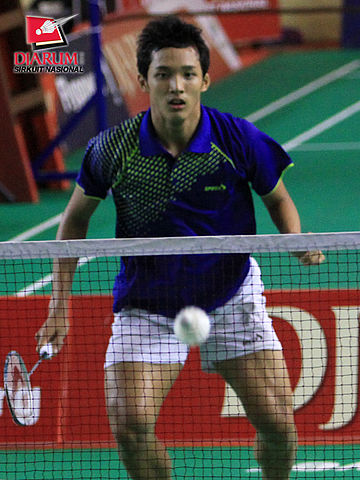 Jonatan Christie dari Tangkas Alfamart mengembalikan kok kepada Ihsan Maulana dari PB Djarum.