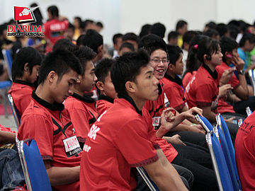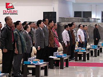 Para tamu undangan pembukaan Djarum Sirnas Palembang 2012 menyanyikan lagu Indonesia Raya bersama-sama.