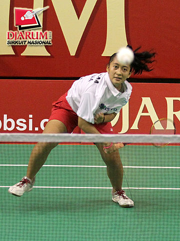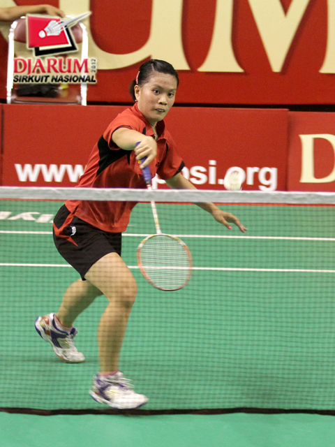 Trikus Harjanto/Vita Marissa (Pertamina Indonesia/Tangkas Specs) melakukan serve.
