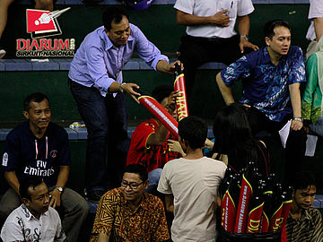 Hantoro / Ricky Alvarino Sidharta (Djarum Kudus) serve.